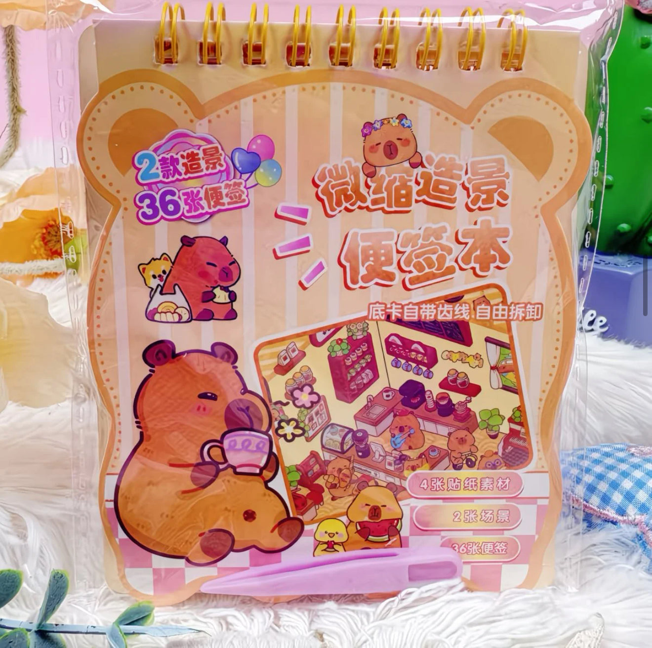 Kreatywny domek z naklejkami z motywem kapibary do tworzenia własnych, bajkowych scen