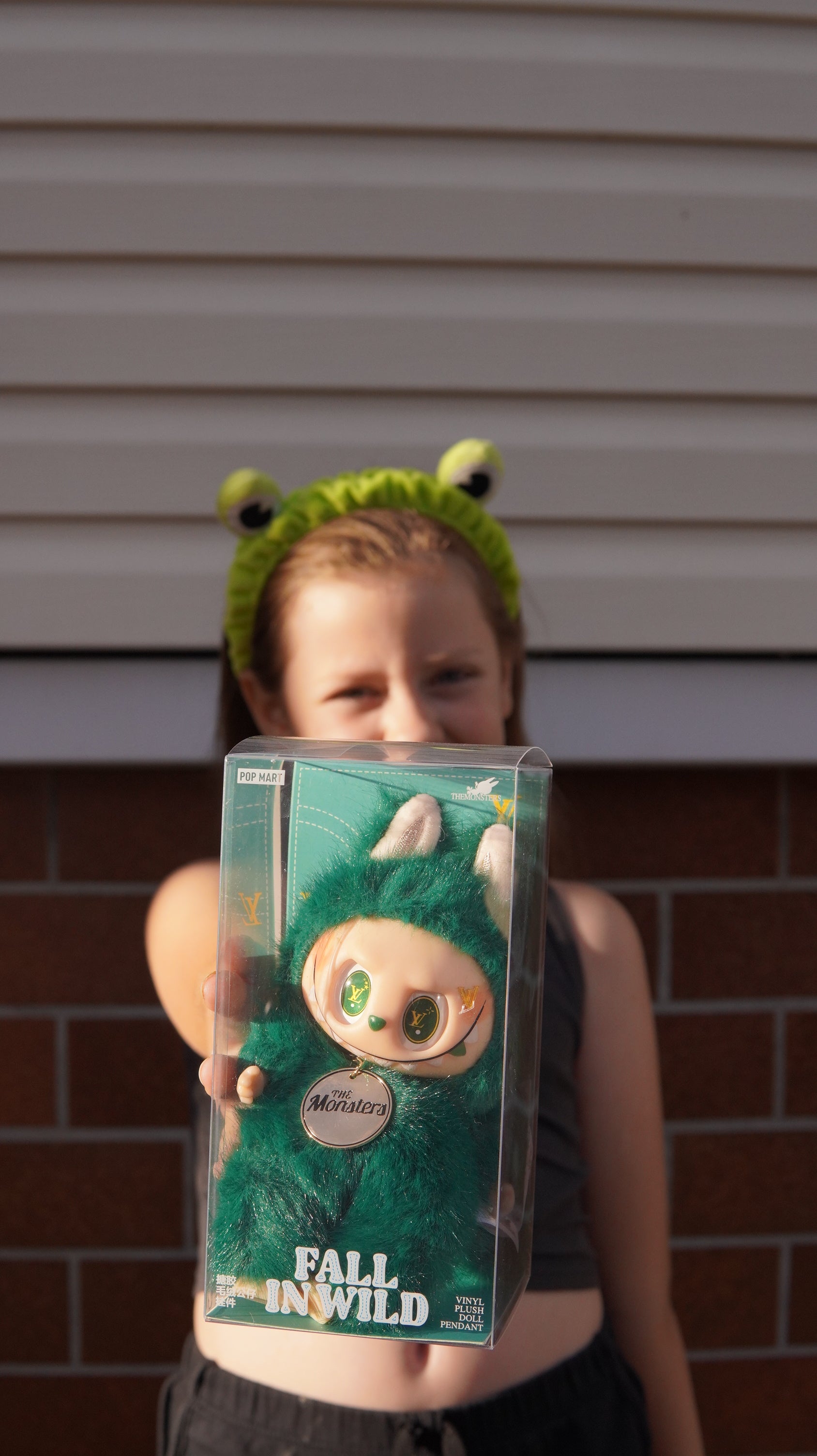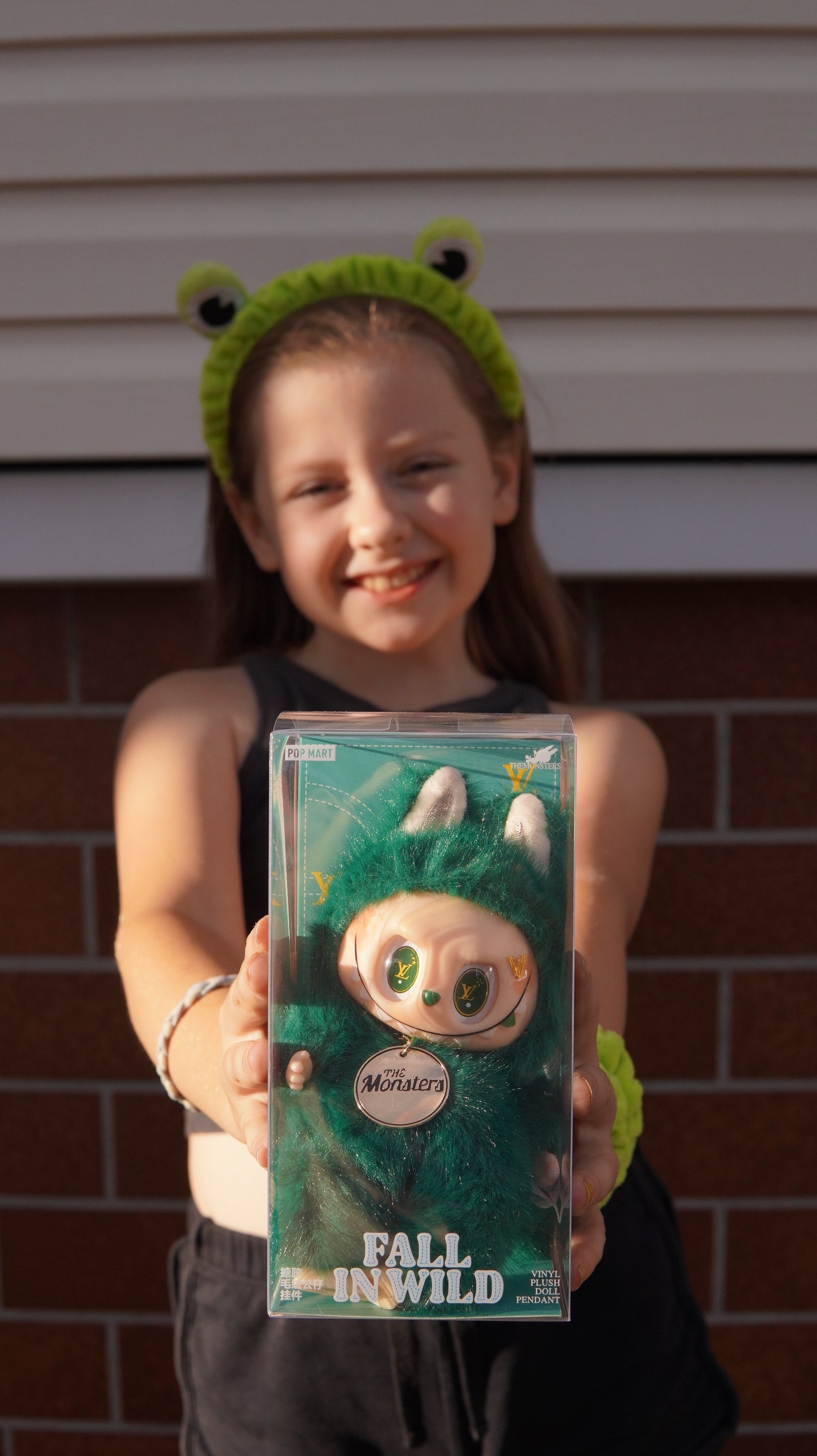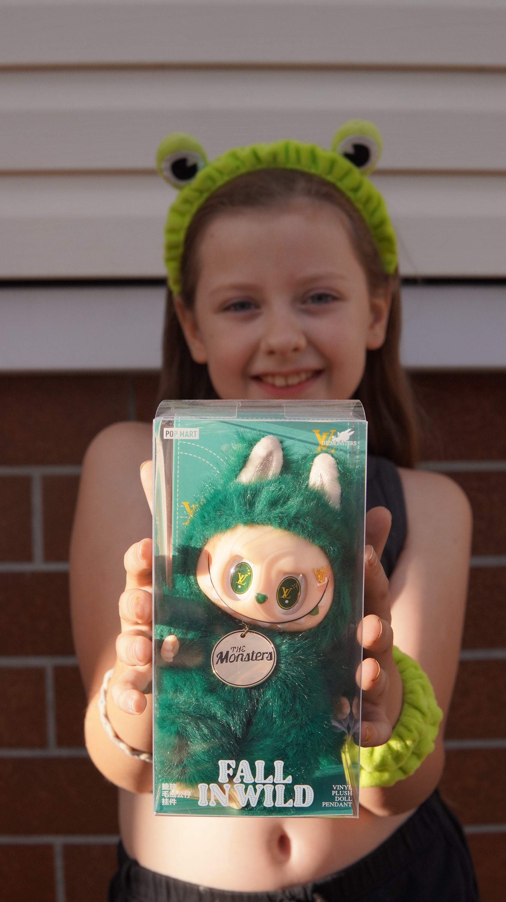 Unikalny brelok Labubu z serii Fall in Wild w intensywnie zielonym futerku, ozdobiony złotymi detalami i zawieszką The Monsters. Charakterystyczne oczy z motywem LV nadają mu luksusowego, wyjątkowego charakteru.